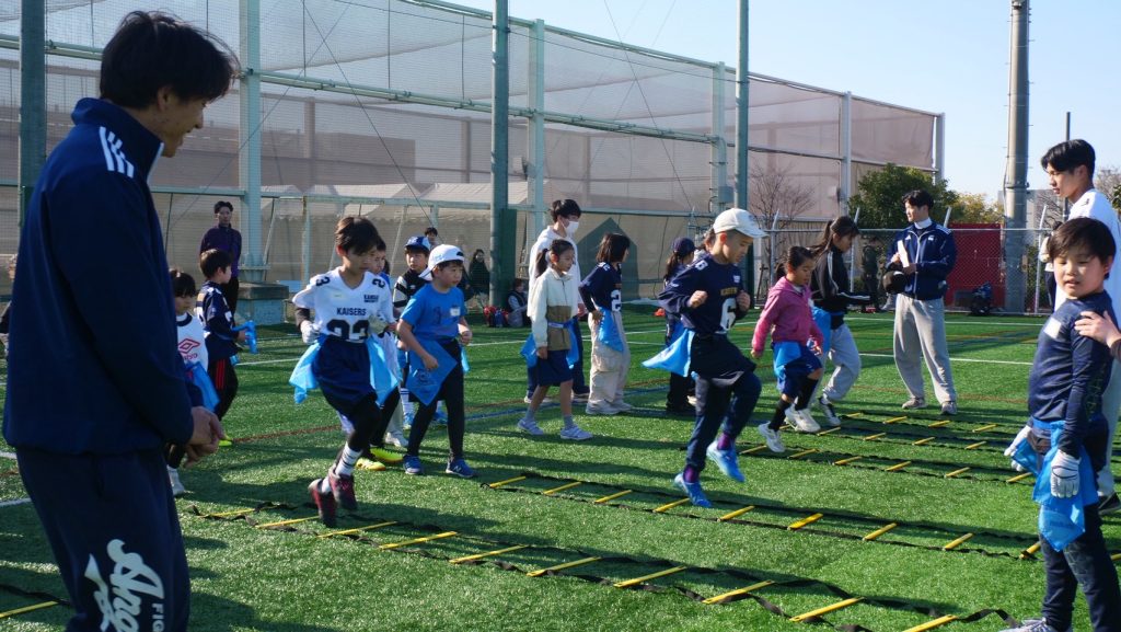 ハドルを聞いて、一つずつ丁寧に取り組めている子どもたち素敵ですね🏈