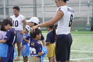 ハドルの中で、ポジションごとの役割をしっかり確認してプレーに臨みます。