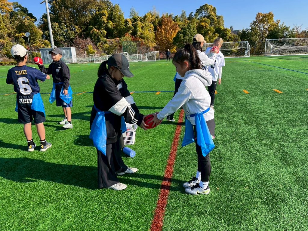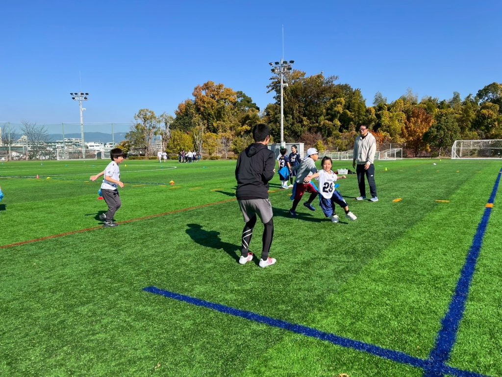 キッズクラスは前回と同じメニューで、基礎的な部分の落とし込みを行いました。前回注意された事をしっかり意識して取り組んでいました!ルート練習では、QBもレシーバーも良いイメージを持って息の合ったタイミングでのパスが上手になってきていました✨