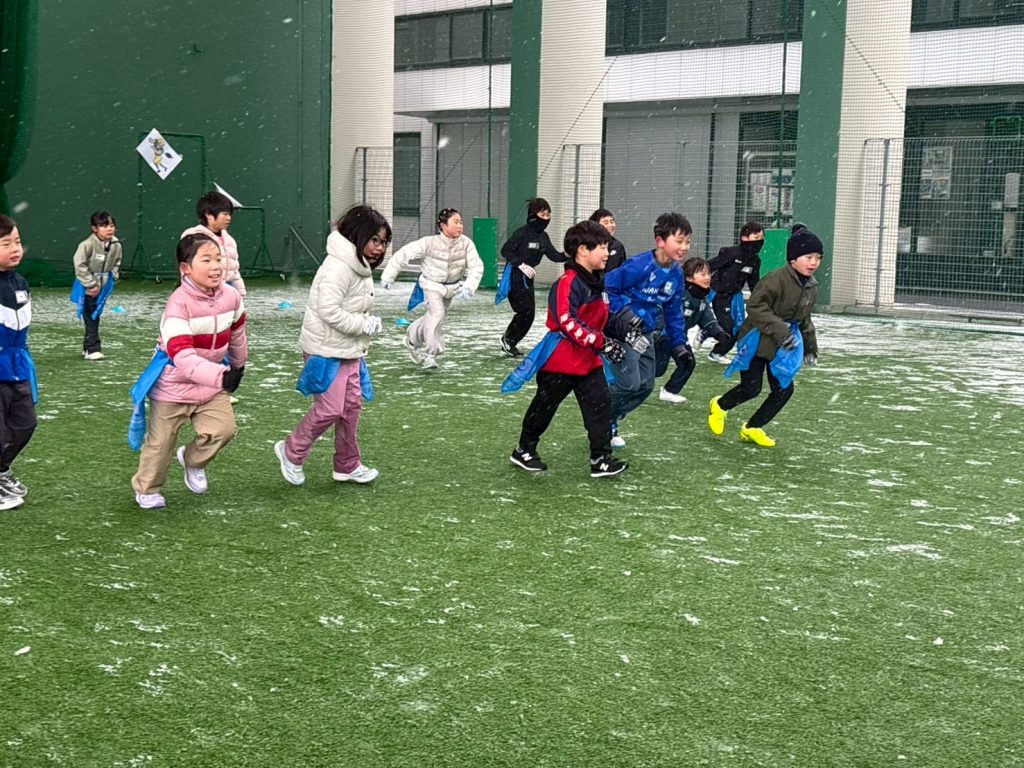 体も冷え切ってきたので、フラッグ鬼ごっこやチーム対抗フラッグ取りも行いました。